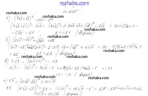 Решака - онлайн ответы Алгебра Дорофеев, Суворова за 8 класс Учебник ФГОС 2014 - 415