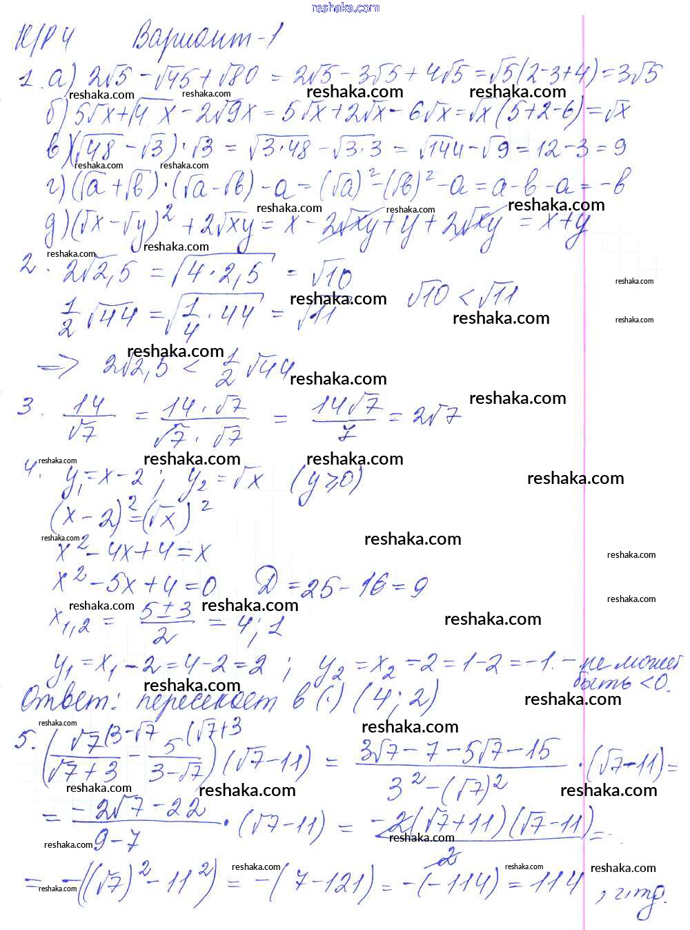 Представляем вам сборники по Алгебре, с готовыми ответами к Контрольным работам Дудницын школьной программы для учеников восьмой класса. Это не просто гдз с ответом, а с подсказками, как верно решить КР-4. Применение свойств арифметического квадратного корня. Варианты 1. Проверяй домашку с умом и получай высший балл!