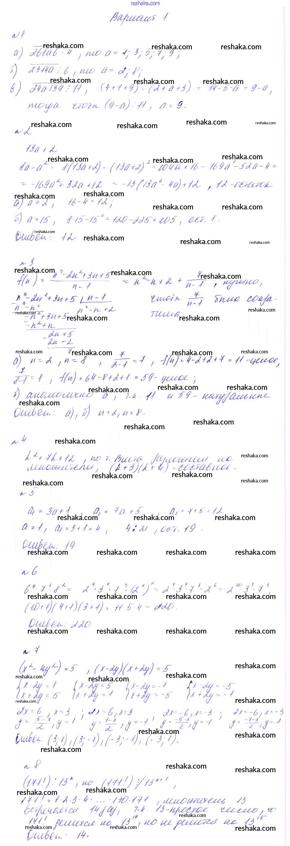 Решака - онлайн ответы Алгебра Феоктистов за 8 класс Дидактические материалы ФГОС 2013 - вариант 1