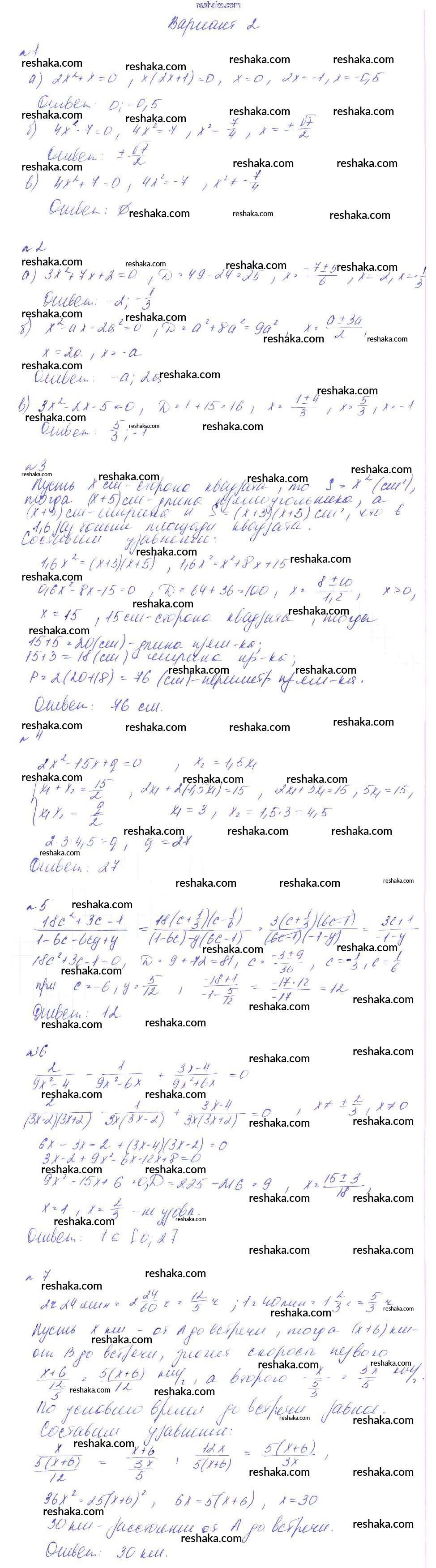 Решака - онлайн ответы Алгебра Феоктистов за 8 класс Дидактические материалы ФГОС 2013 - вариант 2