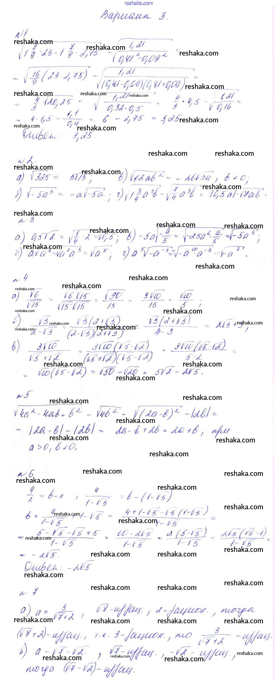 Решака - онлайн ответы Алгебра Феоктистов за 8 класс Дидактические материалы ФГОС 2013 - вариант 3