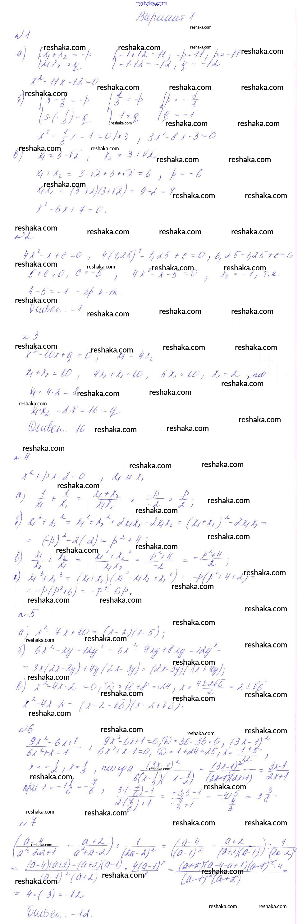 Представляем вам сборники по Алгебре, с готовыми ответами к Дидактическим материалам Феоктистов школьной программы для учеников восьмой класса. Это не просто гдз с ответом, а с подсказками, как верно решить СР-15. Свойство корней квадратного уравнения, симметрические многочлены, разложение квадратного трехчлена на множ Самостоятельные работы вариант 1. Проверяй домашку с умом и получай высший балл!
