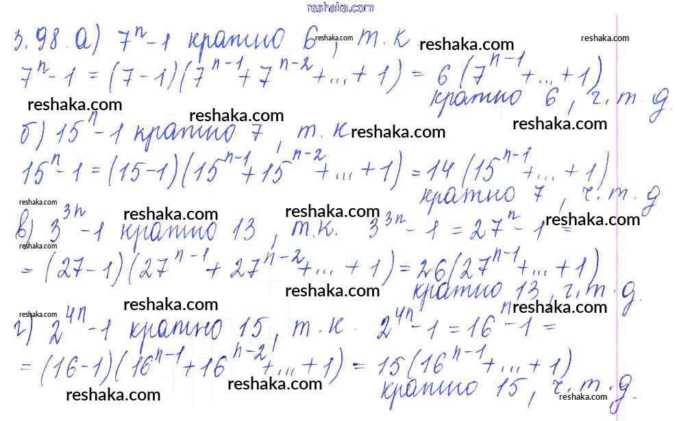 Представляем вам сборники по Алгебре, с готовыми ответами к Сборнику задач Галицкий школьной программы для учеников восьмой класса. Это не просто гдз с ответом, а с подсказками, как верно решить §3. Делимость целых чисел  3.98. Проверяй домашку с умом и получай высший балл!