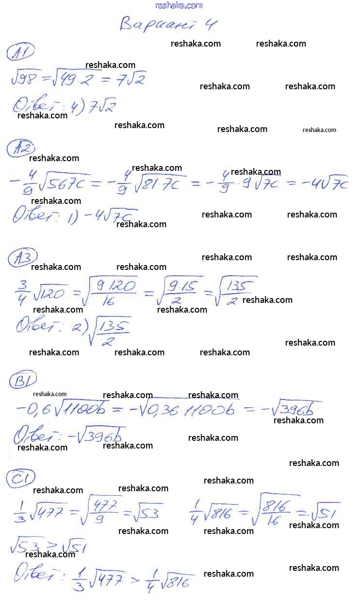 Решака - онлайн ответы Алгебра Глазков, Гаиашвили за 8 класс Самостоятельные и контрольные работы ФГОС 2012 - 4