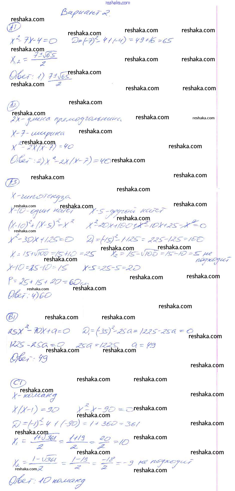 Решака - онлайн ответы Алгебра Глазков, Гаиашвили за 8 класс Самостоятельные и контрольные работы ФГОС 2012 - 2