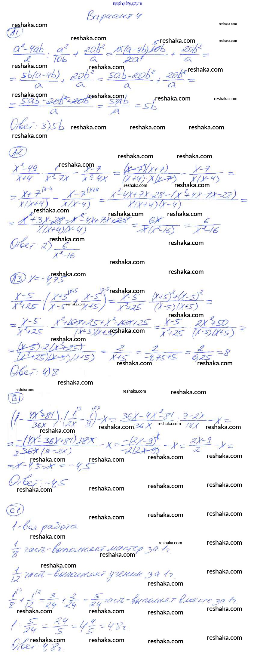 Решака - онлайн ответы Алгебра Глазков, Гаиашвили за 8 класс Самостоятельные и контрольные работы ФГОС 2012 - 4