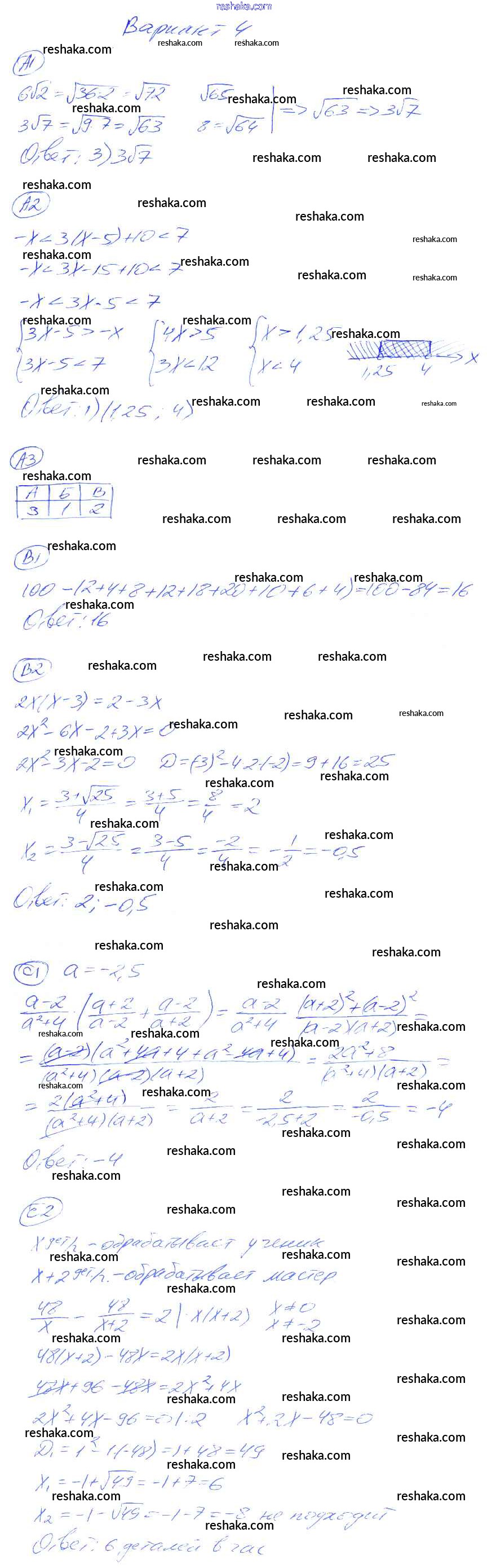 Решака - онлайн ответы Алгебра Глазков, Гаиашвили за 8 класс Самостоятельные и контрольные работы ФГОС 2012 - 4