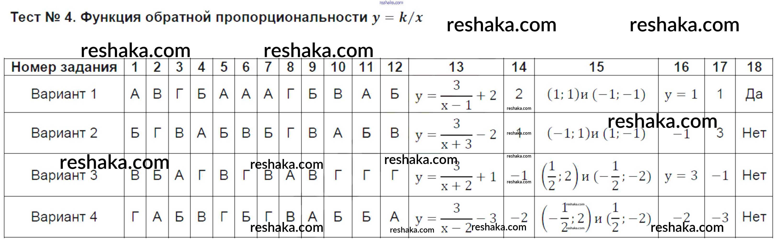 Решака - онлайн ответы Алгебра Ключникова, Комиссарова за 8 класс Тесты ФГОС 2011 - 4
