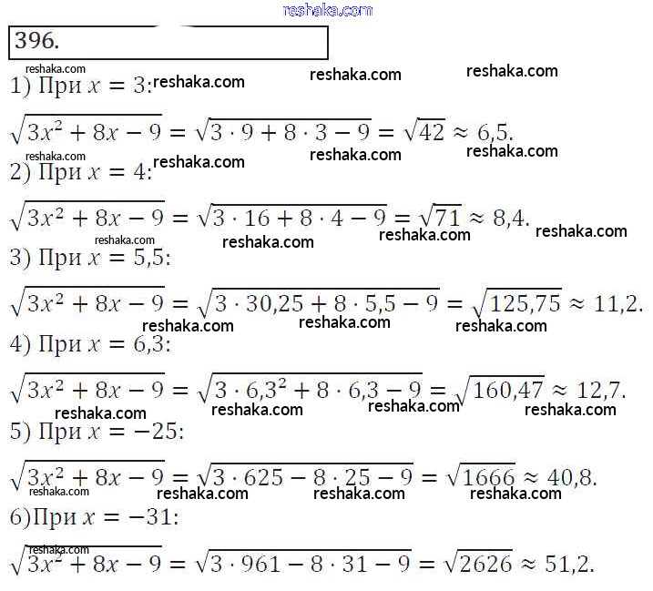 Решака - онлайн ответы Алгебра Колягин, Ткачёва за 8 класс Учебник ФГОС 2013 - 396
