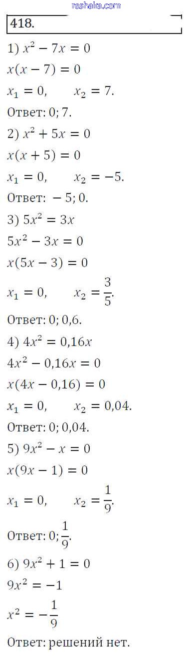 Решака - онлайн ответы Алгебра Колягин, Ткачёва за 8 класс Учебник ФГОС 2013 - 418