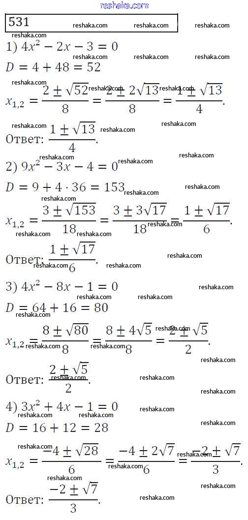 Решака - онлайн ответы Алгебра Колягин, Ткачёва за 8 класс Учебник ФГОС 2013 - 531