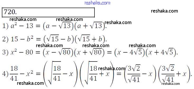 Решака - онлайн ответы Алгебра Колягин, Ткачёва за 8 класс Учебник ФГОС 2013 - 720