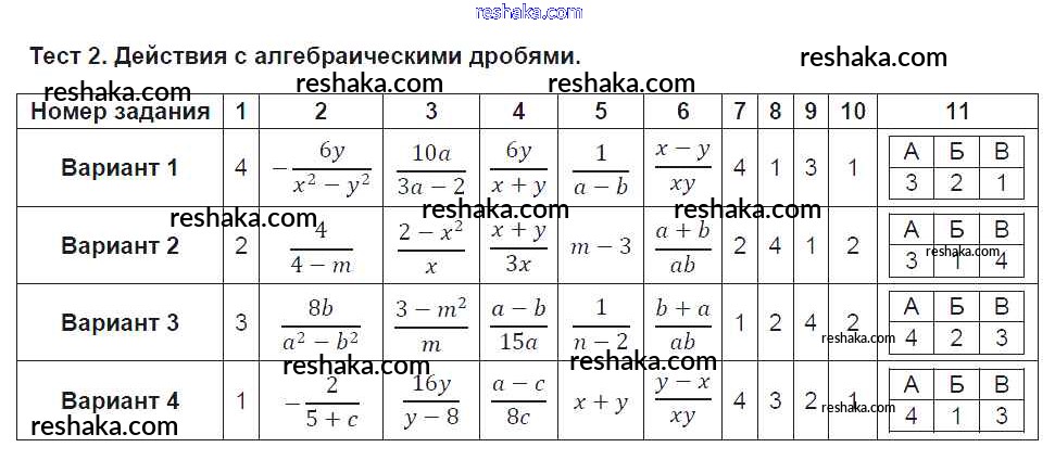 Решака - онлайн ответы Алгебра Кузнецова, Минаева за 8 класс Тематические тесты Базовый уровень ФГОС 2018 - 2