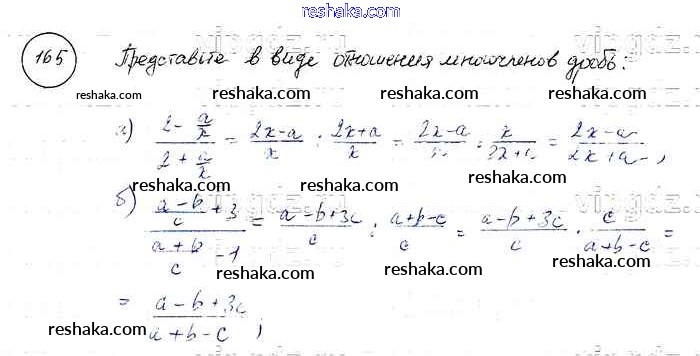 Представляем вам сборники по Алгебре, с готовыми ответами к Учебнику Макарычев школьной программы для учеников восьмой класса. Это не просто гдз с ответом, а с подсказками, как верно решить Упражнения 165. Проверяй домашку с умом и получай высший балл!
