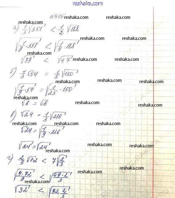 Представляем вам сборники по Алгебре, с готовыми ответами к Учебнику Макарычев школьной программы для учеников восьмой класса. Это не просто гдз с ответом, а с подсказками, как верно решить Упражнения 415. Проверяй домашку с умом и получай высший балл!