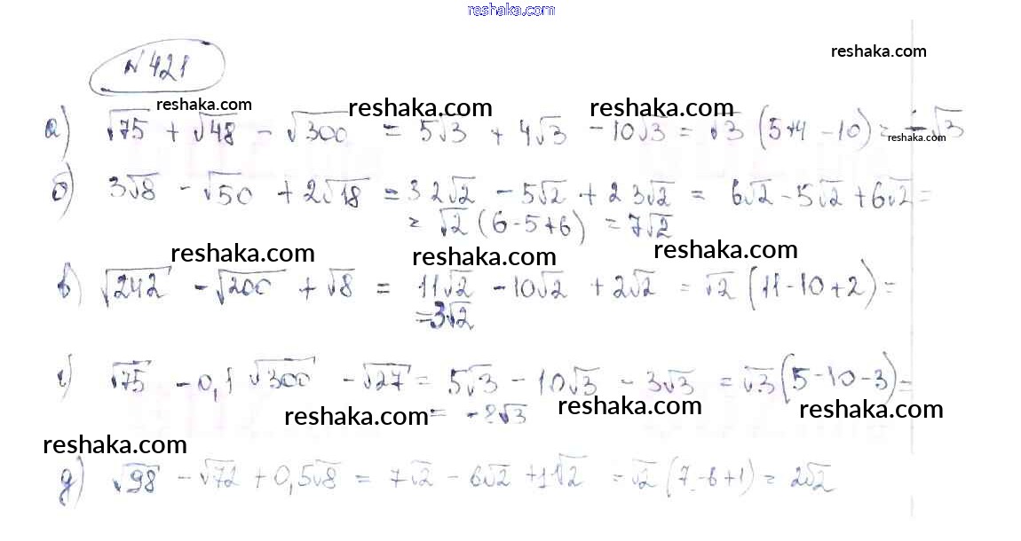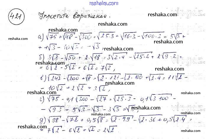 Решака - онлайн ответы Алгебра Макарычев, Миндюк за 8 класс Учебник ФГОС 2016 - 421