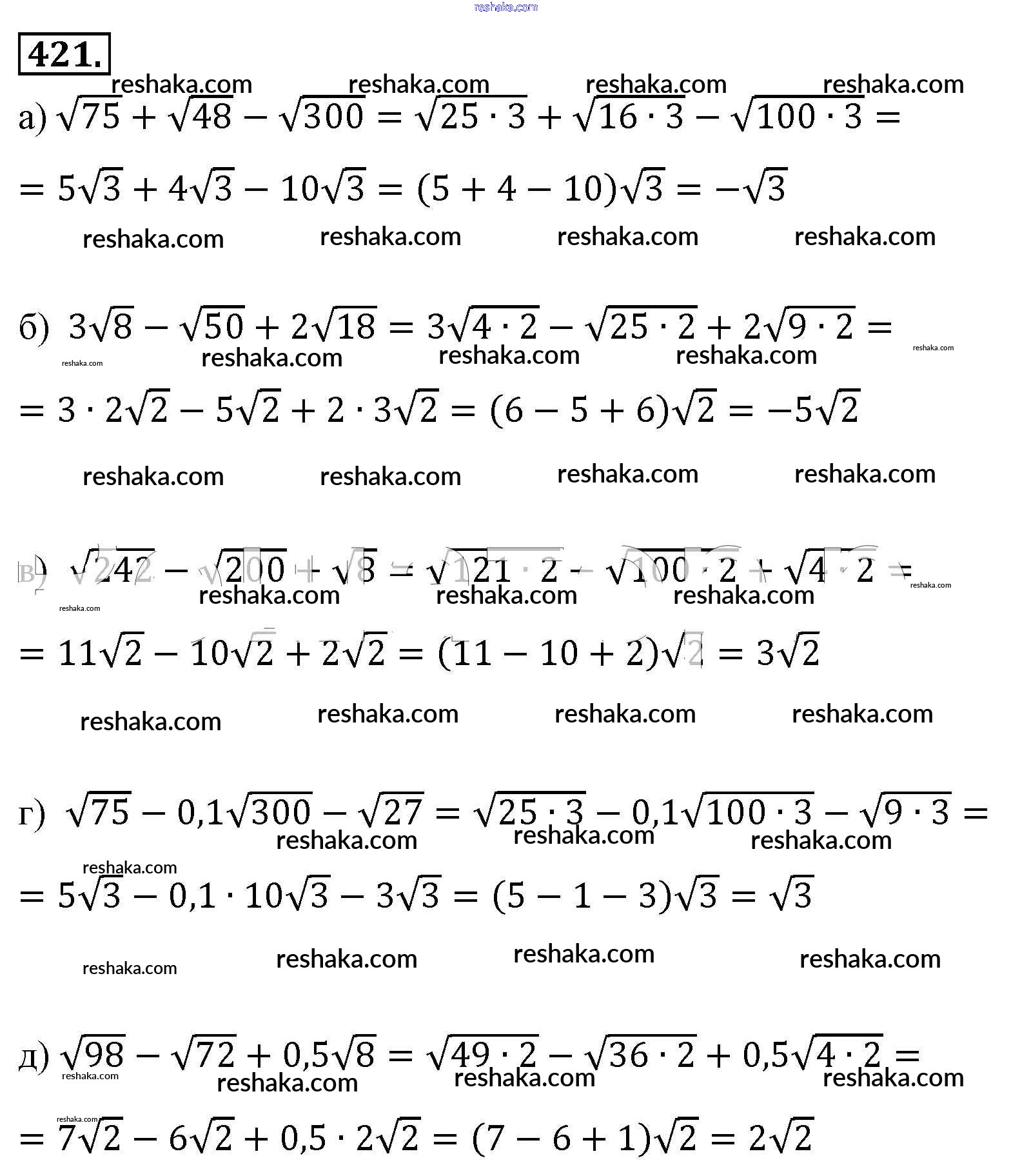 Представляем вам сборники по Алгебре, с готовыми ответами к Учебнику Макарычев школьной программы для учеников восьмой класса. Это не просто гдз с ответом, а с подсказками, как верно решить Упражнения 421. Проверяй домашку с умом и получай высший балл!