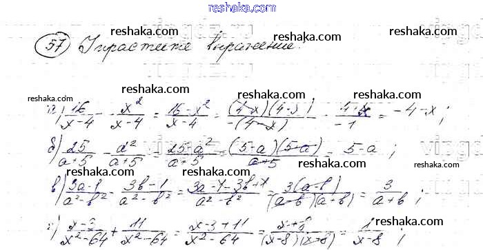 Представляем вам сборники по Алгебре, с готовыми ответами к Учебнику Макарычев школьной программы для учеников восьмой класса. Это не просто гдз с ответом, а с подсказками, как верно решить Упражнения 57. Проверяй домашку с умом и получай высший балл!