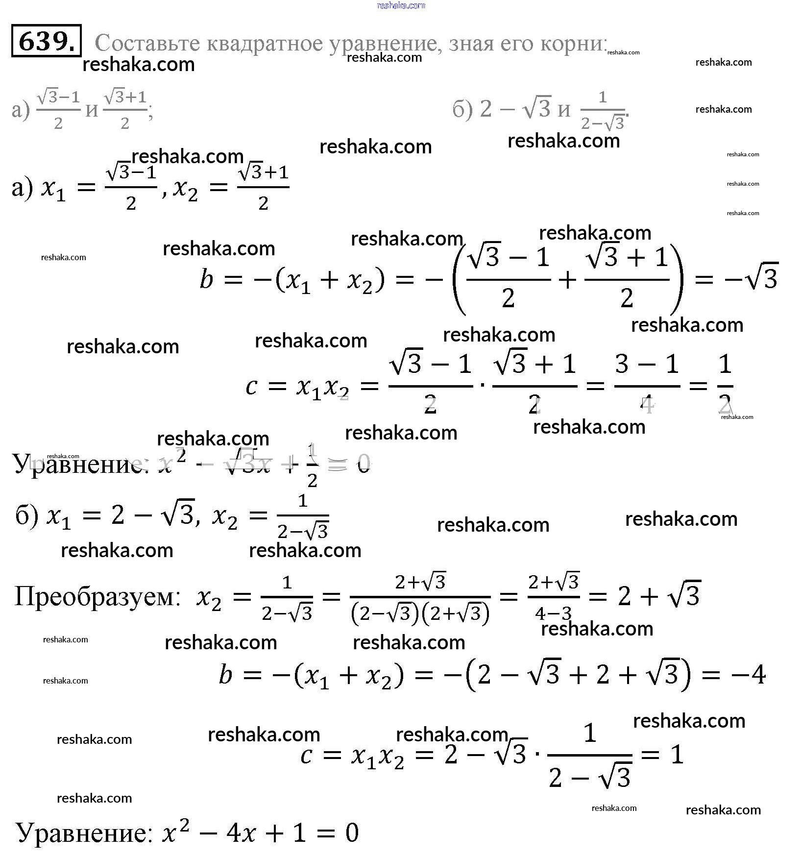 Представляем вам сборники по Алгебре, с готовыми ответами к Учебнику Макарычев школьной программы для учеников восьмой класса. Это не просто гдз с ответом, а с подсказками, как верно решить Упражнения 639. Проверяй домашку с умом и получай высший балл!