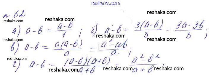Представляем вам сборники по Алгебре, с готовыми ответами к Учебнику Макарычев школьной программы для учеников восьмой класса. Это не просто гдз с ответом, а с подсказками, как верно решить Упражнения 62. Проверяй домашку с умом и получай высший балл!