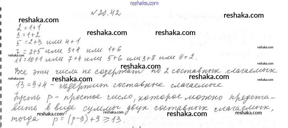 Представляем вам сборники по Алгебре, с готовыми ответами к Учебнику Мерзляк школьной программы для учеников восьмой класса. Это не просто гдз с ответом, а с подсказками, как верно решить §20. Простые и составные числа Глава 3. Основы теории делимости 42. Проверяй домашку с умом и получай высший балл!