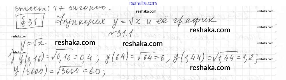 Представляем вам сборники по Алгебре, с готовыми ответами к Учебнику Мерзляк школьной программы для учеников восьмой класса. Это не просто гдз с ответом, а с подсказками, как верно решить §31. Функция y=√x и ее график Глава 5. Квадратные корни. Действительные числа 1. Проверяй домашку с умом и получай высший балл!