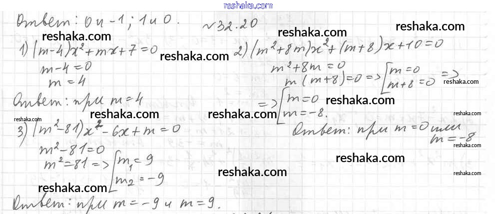 Представляем вам сборники по Алгебре, с готовыми ответами к Учебнику Мерзляк школьной программы для учеников восьмой класса. Это не просто гдз с ответом, а с подсказками, как верно решить §32. Квадратные уравнения Глава 6. Квадратные уравнения 20. Проверяй домашку с умом и получай высший балл!