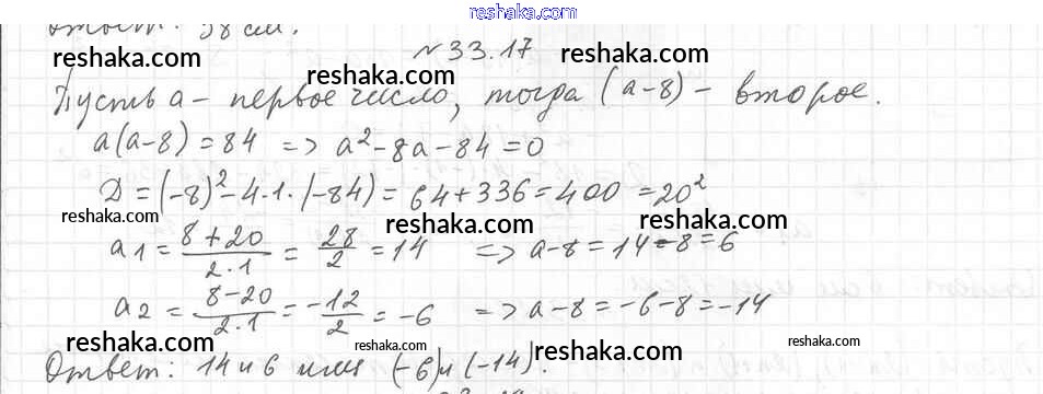 Представляем вам сборники по Алгебре, с готовыми ответами к Учебнику Мерзляк школьной программы для учеников восьмой класса. Это не просто гдз с ответом, а с подсказками, как верно решить §33. Формула корней квадратного уравнения Глава 6. Квадратные уравнения 17. Проверяй домашку с умом и получай высший балл!