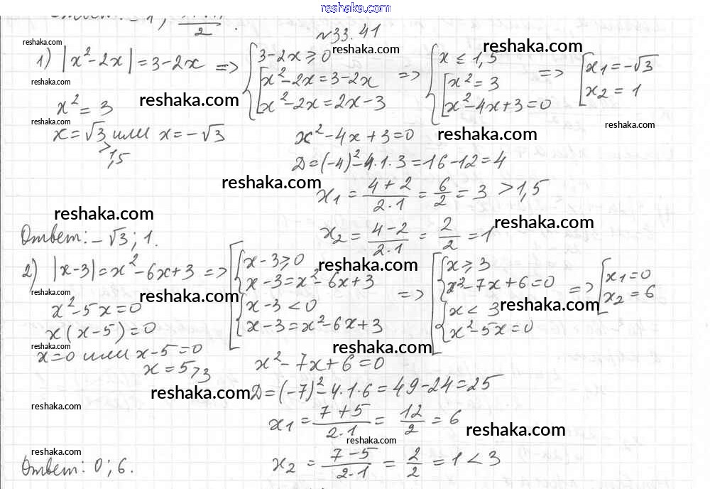 Представляем вам сборники по Алгебре, с готовыми ответами к Учебнику Мерзляк школьной программы для учеников восьмой класса. Это не просто гдз с ответом, а с подсказками, как верно решить §33. Формула корней квадратного уравнения Глава 6. Квадратные уравнения 41. Проверяй домашку с умом и получай высший балл!