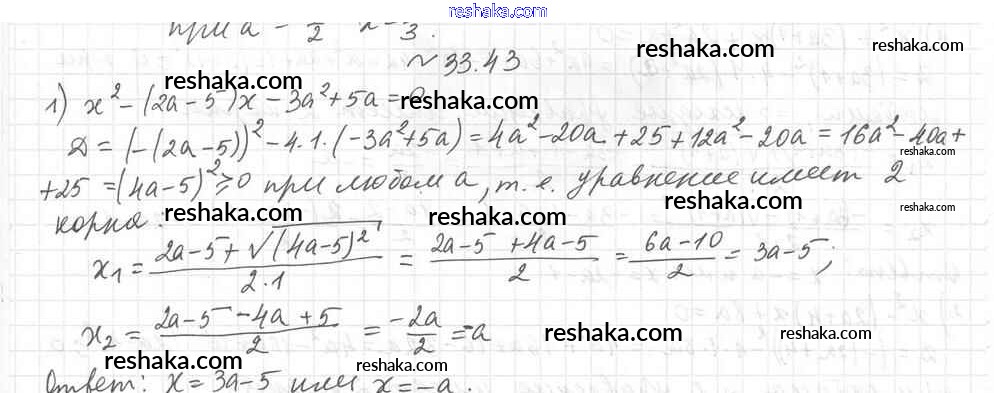 Представляем вам сборники по Алгебре, с готовыми ответами к Учебнику Мерзляк школьной программы для учеников восьмой класса. Это не просто гдз с ответом, а с подсказками, как верно решить §33. Формула корней квадратного уравнения Глава 6. Квадратные уравнения 43. Проверяй домашку с умом и получай высший балл!