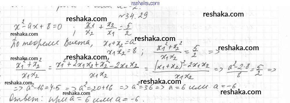 Представляем вам сборники по Алгебре, с готовыми ответами к Учебнику Мерзляк школьной программы для учеников восьмой класса. Это не просто гдз с ответом, а с подсказками, как верно решить §34. Теорема Виета Глава 6. Квадратные уравнения 29. Проверяй домашку с умом и получай высший балл!
