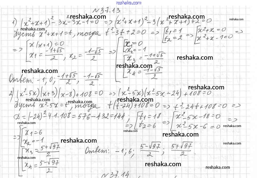 Представляем вам сборники по Алгебре, с готовыми ответами к Учебнику Мерзляк школьной программы для учеников восьмой класса. Это не просто гдз с ответом, а с подсказками, как верно решить §37. Решение уравнений методом замены переменной Глава 6. Квадратные уравнения 13. Проверяй домашку с умом и получай высший балл!