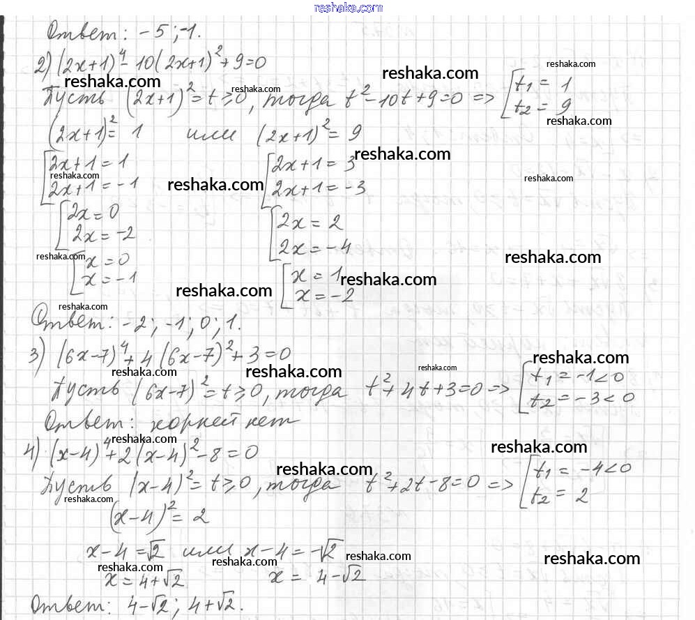 Представляем вам сборники по Алгебре, с готовыми ответами к Учебнику Мерзляк школьной программы для учеников восьмой класса. Это не просто гдз с ответом, а с подсказками, как верно решить §37. Решение уравнений методом замены переменной Глава 6. Квадратные уравнения 3. Проверяй домашку с умом и получай высший балл!