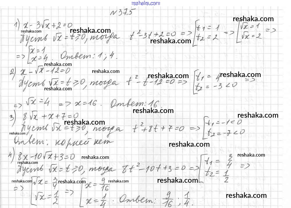 Представляем вам сборники по Алгебре, с готовыми ответами к Учебнику Мерзляк школьной программы для учеников восьмой класса. Это не просто гдз с ответом, а с подсказками, как верно решить §37. Решение уравнений методом замены переменной Глава 6. Квадратные уравнения 5. Проверяй домашку с умом и получай высший балл!