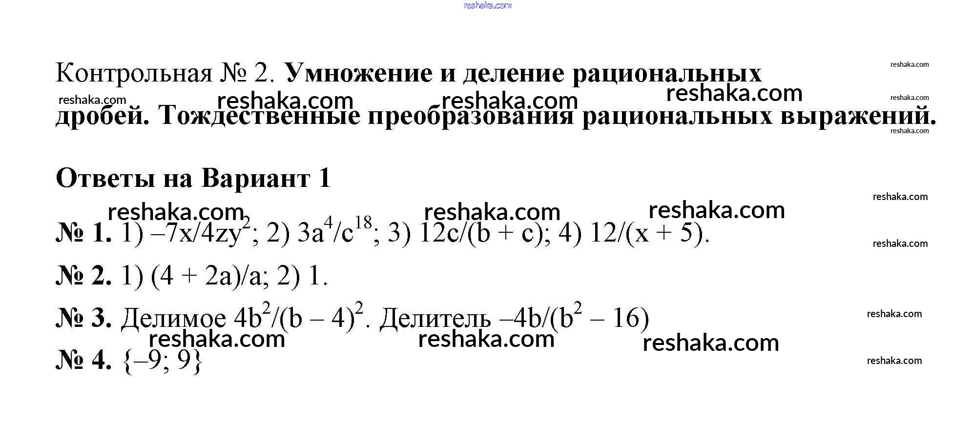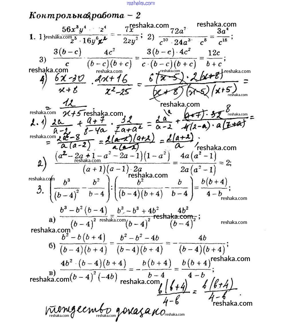 Представляем вам сборники по Алгебре, с готовыми ответами к Дидактическим материалам Мерзляк школьной программы для учеников восьмой класса. Это не просто гдз с ответом, а с подсказками, как верно решить КР-2. Умножение и деление рациональных дробей. Тождественные преобразования рациональных дробей Контрольные работы вариант 1. Проверяй домашку с умом и получай высший балл!