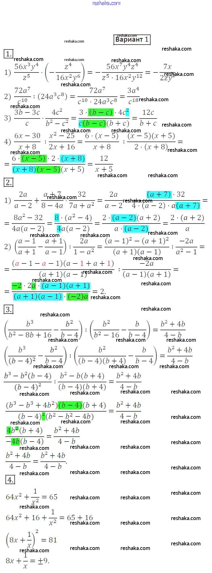 Решака - онлайн ответы Алгебра Мерзляк, Полонский за 8 класс Дидактические материалы ФГОС 2016 - вариант 1