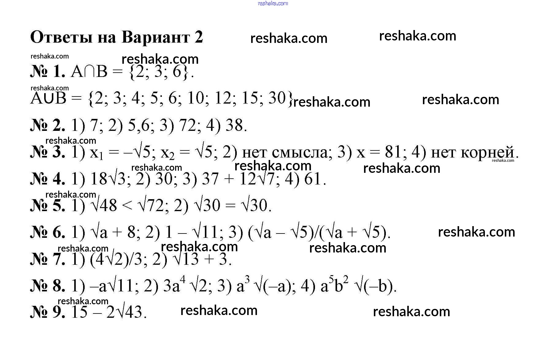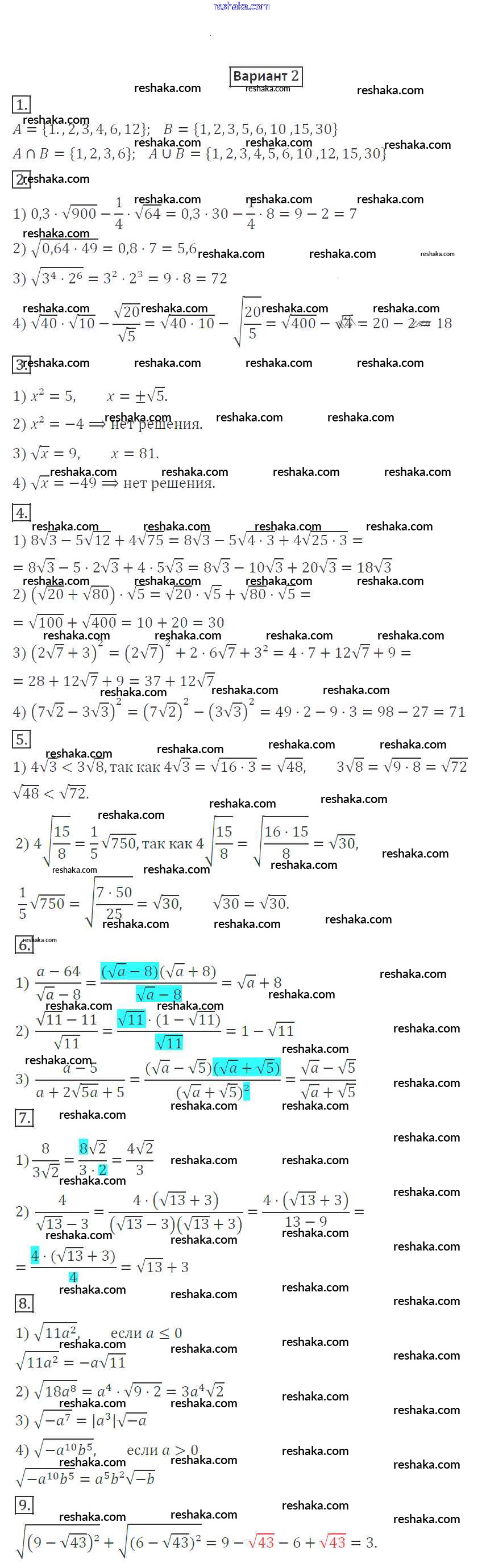 Решака - онлайн ответы Алгебра Мерзляк, Полонский за 8 класс Дидактические материалы ФГОС 2016 - вариант 2