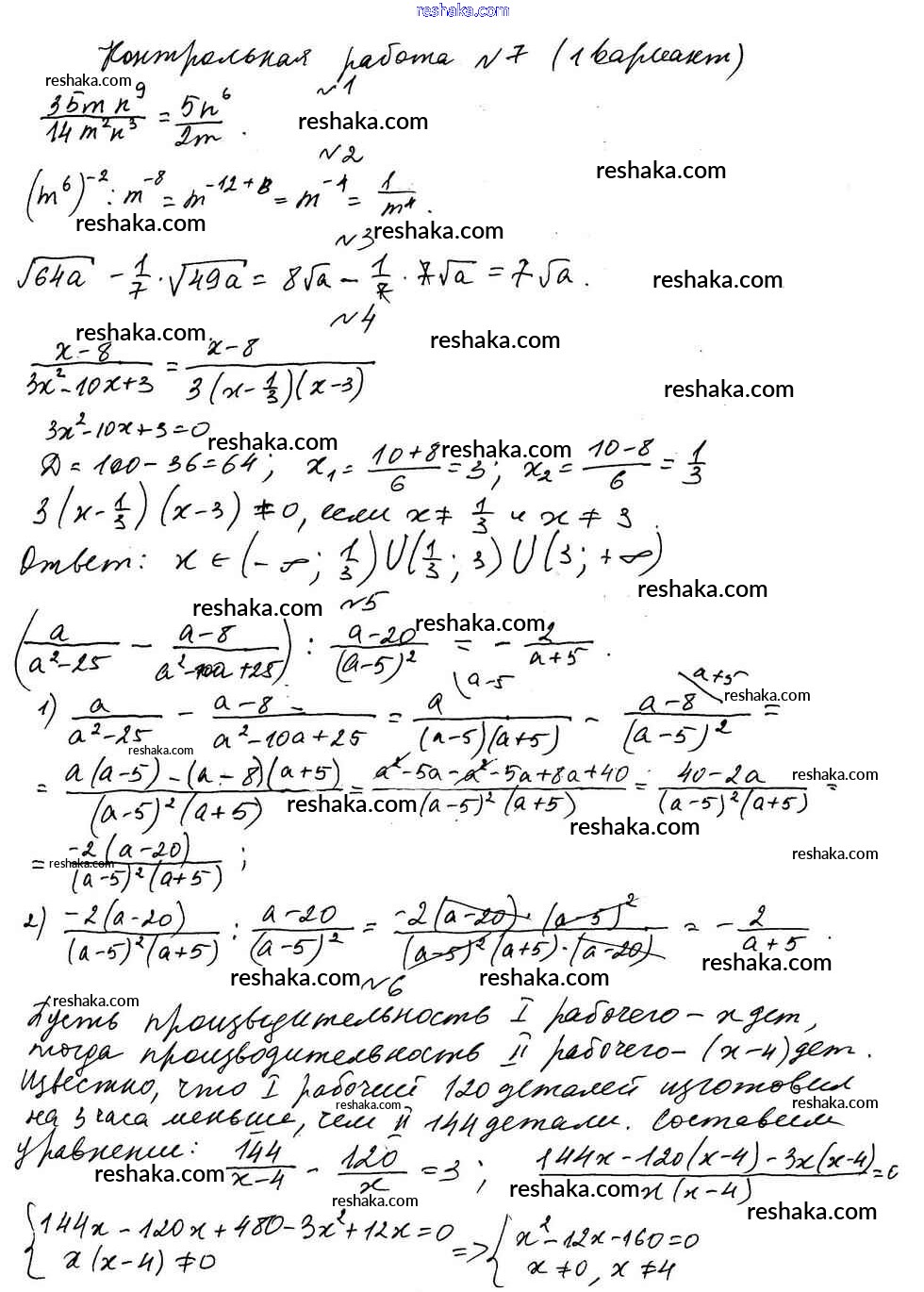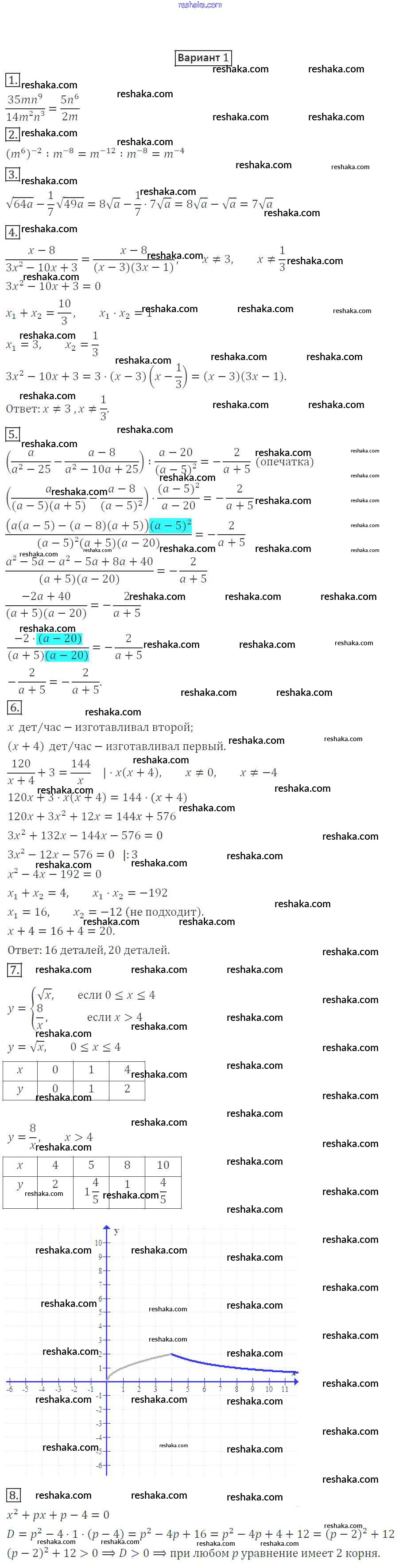 Решака - онлайн ответы Алгебра Мерзляк, Полонский за 8 класс Дидактические материалы ФГОС 2016 - вариант 1