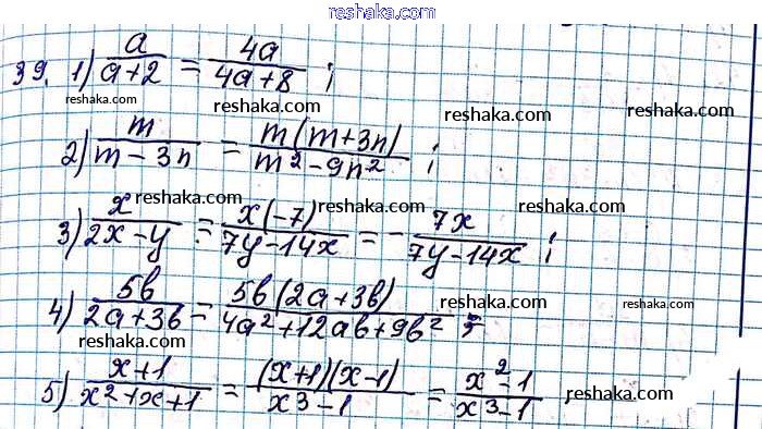 Представляем вам сборники по Алгебре, с готовыми ответами к Учебнику Мерзляк школьной программы для учеников восьмой класса. Это не просто гдз с ответом, а с подсказками, как верно решить §2. Основное свойство рациональной дроби Глава 1. Рациональные выражения 39. Проверяй домашку с умом и получай высший балл!
