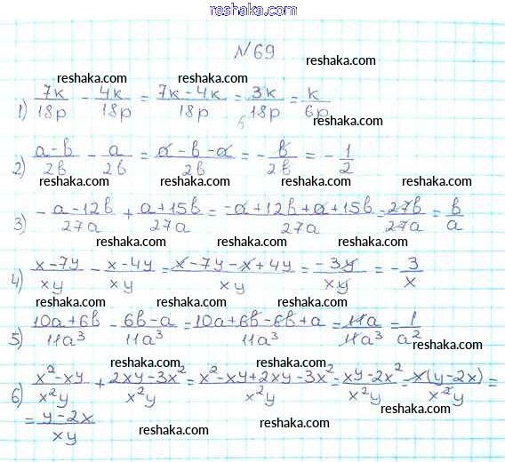 Представляем вам сборники по Алгебре, с готовыми ответами к Учебнику Мерзляк школьной программы для учеников восьмой класса. Это не просто гдз с ответом, а с подсказками, как верно решить §3. Сложение и вычитание рациональных дробей с одинаковыми знаменателями Глава 1. Рациональные выражения 69. Проверяй домашку с умом и получай высший балл!