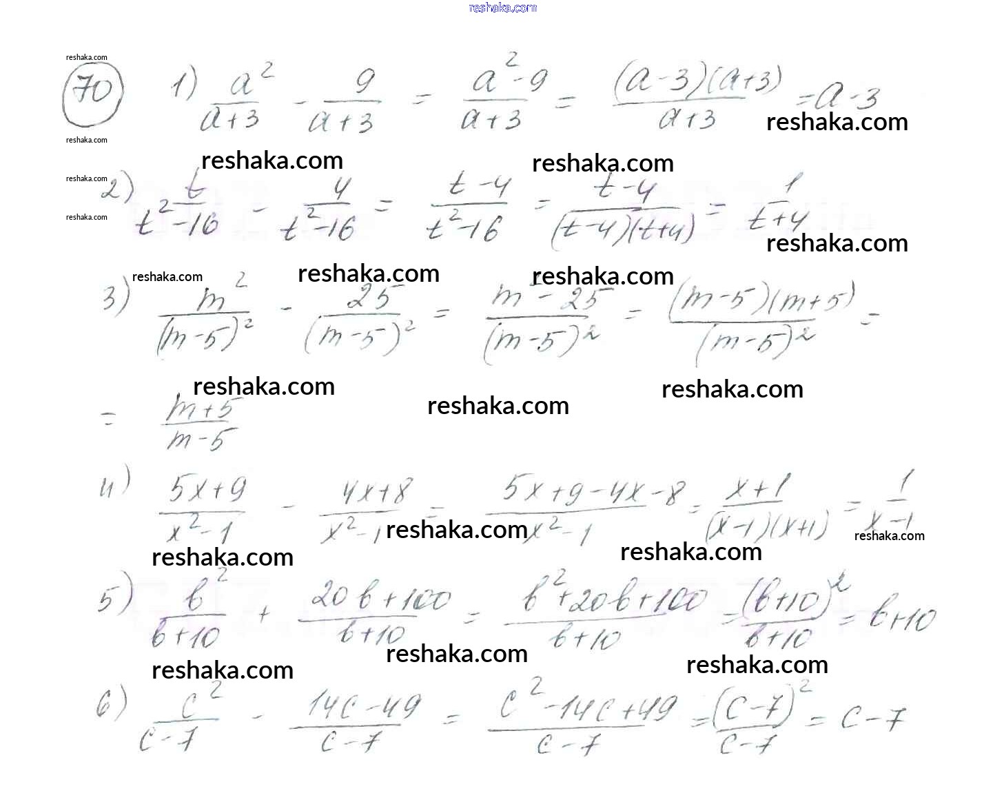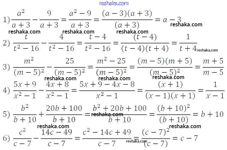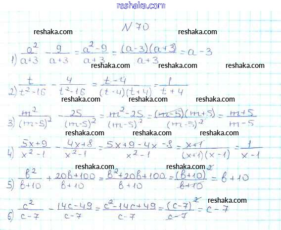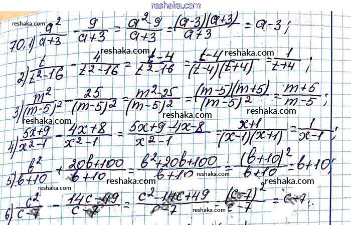 Представляем вам сборники по Алгебре, с готовыми ответами к Учебнику Мерзляк школьной программы для учеников восьмой класса. Это не просто гдз с ответом, а с подсказками, как верно решить §3. Сложение и вычитание рациональных дробей с одинаковыми знаменателями Глава 1. Рациональные выражения 70. Проверяй домашку с умом и получай высший балл!