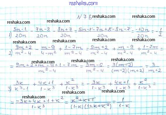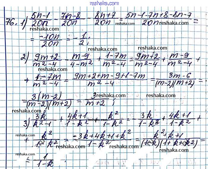 Представляем вам сборники по Алгебре, с готовыми ответами к Учебнику Мерзляк школьной программы для учеников восьмой класса. Это не просто гдз с ответом, а с подсказками, как верно решить §3. Сложение и вычитание рациональных дробей с одинаковыми знаменателями Глава 1. Рациональные выражения 76. Проверяй домашку с умом и получай высший балл!