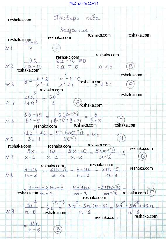 Представляем вам сборники по Алгебре, с готовыми ответами к Учебнику Мерзляк школьной программы для учеников восьмой класса. Это не просто гдз с ответом, а с подсказками, как верно решить Проверь себя №1 Глава 1. Рациональные выражения 1. Проверяй домашку с умом и получай высший балл!