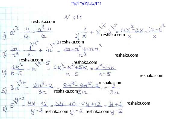 Представляем вам сборники по Алгебре, с готовыми ответами к Учебнику Мерзляк школьной программы для учеников восьмой класса. Это не просто гдз с ответом, а с подсказками, как верно решить §4. Сложение и вычитание рациональных дробей с разными знаменателями Глава 1. Рациональные выражения 111. Проверяй домашку с умом и получай высший балл!