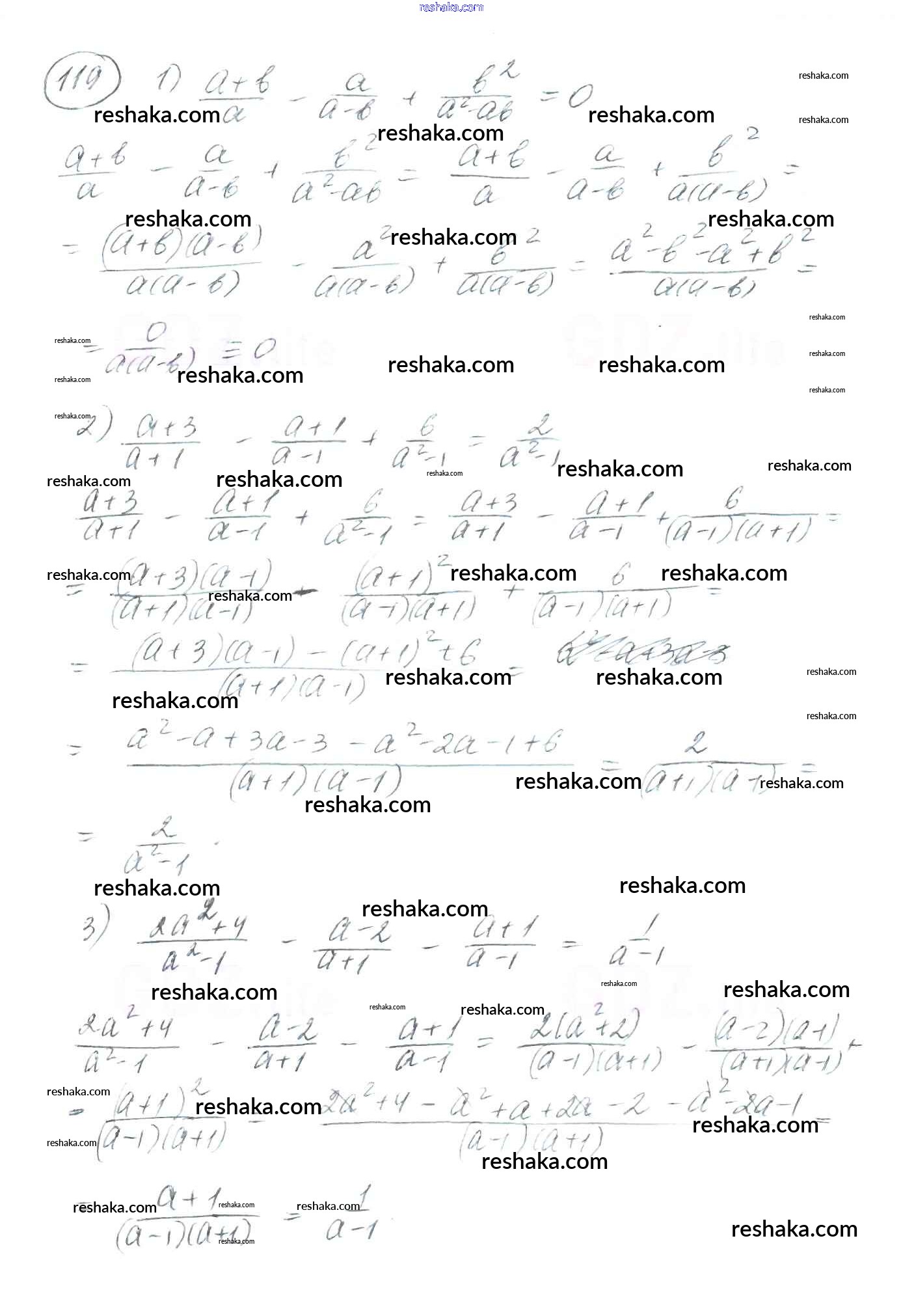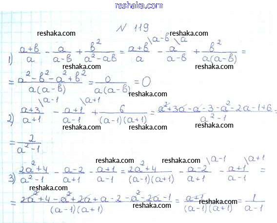 Представляем вам сборники по Алгебре, с готовыми ответами к Учебнику Мерзляк школьной программы для учеников восьмой класса. Это не просто гдз с ответом, а с подсказками, как верно решить §4. Сложение и вычитание рациональных дробей с разными знаменателями Глава 1. Рациональные выражения 119. Проверяй домашку с умом и получай высший балл!