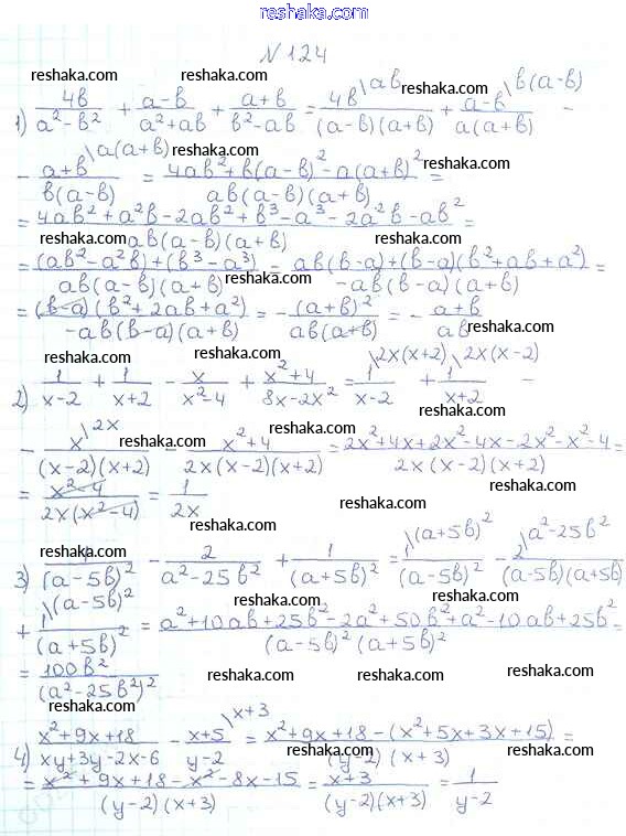 Представляем вам сборники по Алгебре, с готовыми ответами к Учебнику Мерзляк школьной программы для учеников восьмой класса. Это не просто гдз с ответом, а с подсказками, как верно решить §4. Сложение и вычитание рациональных дробей с разными знаменателями Глава 1. Рациональные выражения 124. Проверяй домашку с умом и получай высший балл!
