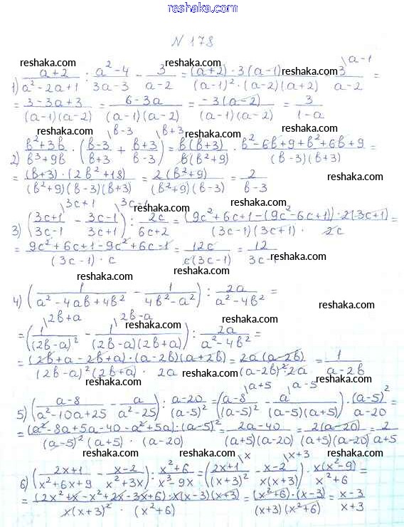 Представляем вам сборники по Алгебре, с готовыми ответами к Учебнику Мерзляк школьной программы для учеников восьмой класса. Это не просто гдз с ответом, а с подсказками, как верно решить §6. Тождественные преобразования рациональных выражений Глава 1. Рациональные выражения 178. Проверяй домашку с умом и получай высший балл!