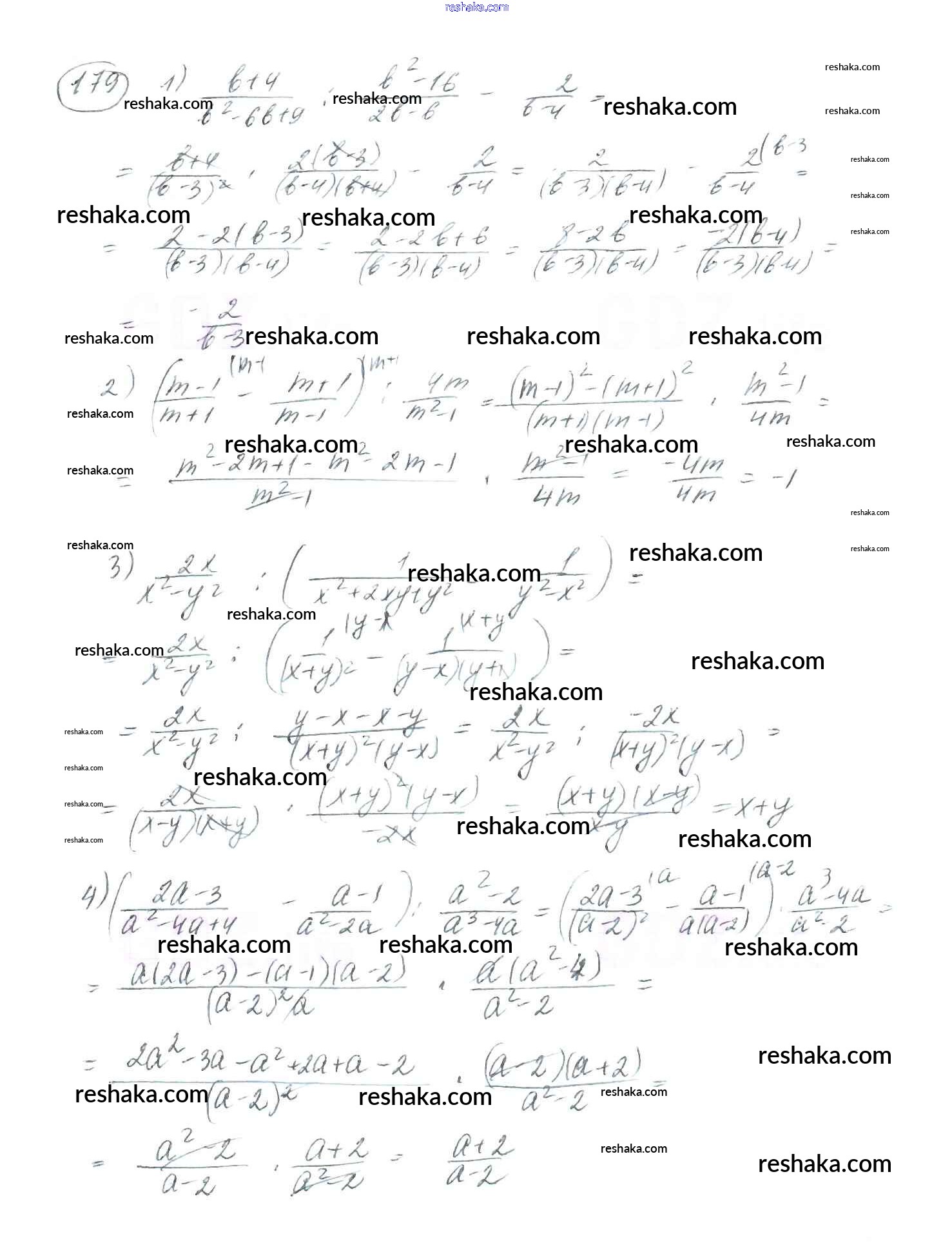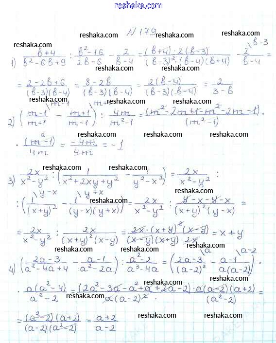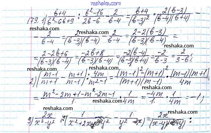 Представляем вам сборники по Алгебре, с готовыми ответами к Учебнику Мерзляк школьной программы для учеников восьмой класса. Это не просто гдз с ответом, а с подсказками, как верно решить §6. Тождественные преобразования рациональных выражений Глава 1. Рациональные выражения 179. Проверяй домашку с умом и получай высший балл!