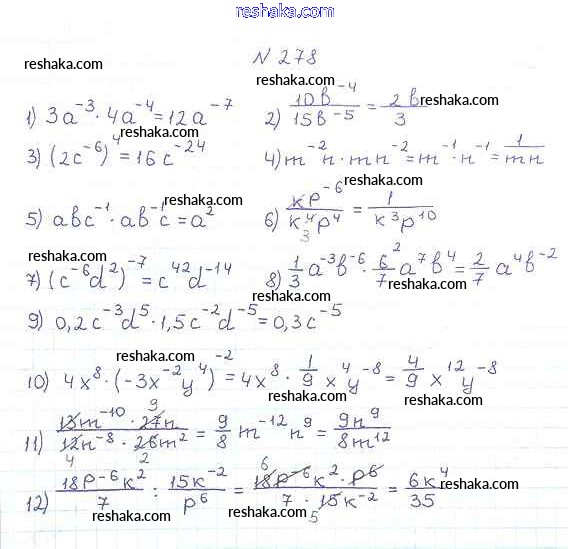 Представляем вам сборники по Алгебре, с готовыми ответами к Учебнику Мерзляк школьной программы для учеников восьмой класса. Это не просто гдз с ответом, а с подсказками, как верно решить §9. Свойства степени с целым показателем Глава 1. Рациональные выражения 278. Проверяй домашку с умом и получай высший балл!