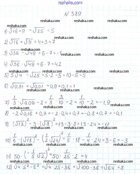 Решака - онлайн ответы Алгебра Мерзляк, Полонский за 8 класс Учебник ФГОС 2016 - 389